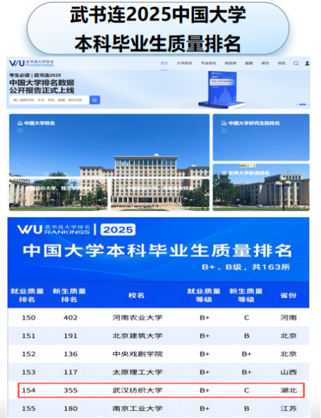 十、深化综合教学改革,毕业生就业质量省属夺魁。本科教育综合改革显成效,武书连团队发布2025中国大学本科毕业生就业质量排名,学校位列湖北省省属高校第1名。